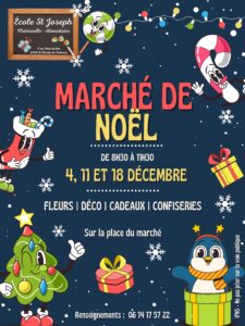 Les jeudis 11 et 18 décembre, l’APEL de l’école Saint Joseph de Saint-Martin de Valamas vous propose un marché de Noël de 8h30 à 12h sur la place du village.
