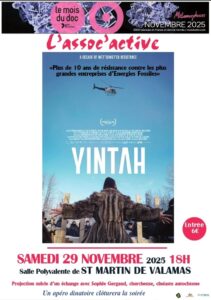 C’est dans le cadre du mois du film documentaire dont le principe est d’ offrir aux spectatrices et spectateurs des projections de films, suivies de rencontres, d’ateliers et de débats, que l’assoc’active  vous propose la projection du film « yintah », samedi 29 novembre à 18H à la salle polyvalente de St Martin de Valamas.
