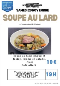 C’est le retour tant attendu de la grande soirée Soupe au lard avec le club de DESAIGNES