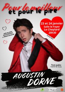 “Qui a dit que l’amour était réservé aux adultes ? C’est possible aussi quand on est ado de draguer, séduire, charmer et surtout collectionner les râteaux… Pour son premier One man show, Augustin Dorne nous emmène dans un périple humoristique à la recherche du grand amour ! Une aventure chauvine déjantée où le sérieux ne compte pas (ou pas trop).